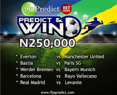 To Participate in our N250,000 Weekly Facebook prediction click here : http://ift.tt/g8FRpY 9japredict